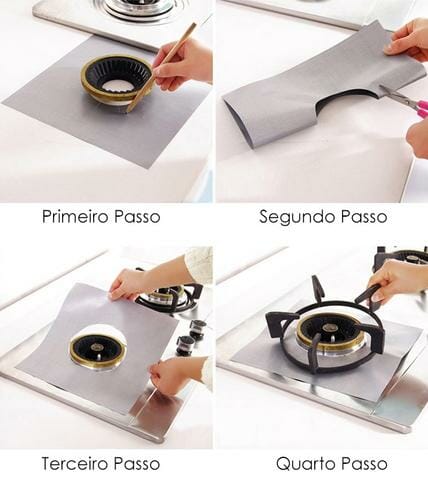 É fácil de aplicar em qualquer tipo de fogão. Você pode personalizar o tamanho para caber perfeitamente no seu fogão.